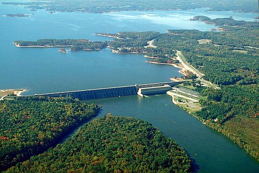 The John H. Kerr Dam and Reservoir, also known as Kerr Lake or Buggs Island Lake, is located on the Virginia-North Carolina border in the United States. It's a popular destination for a variety of outdoor recreational activities, including camping, fishing, boating, and swimming.